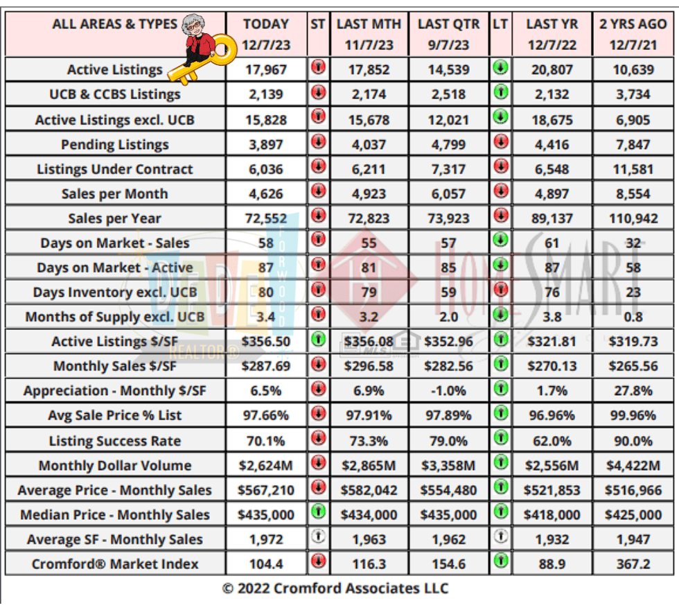 - Overall median sales price: $465,000, up 2.2% from November 2022.