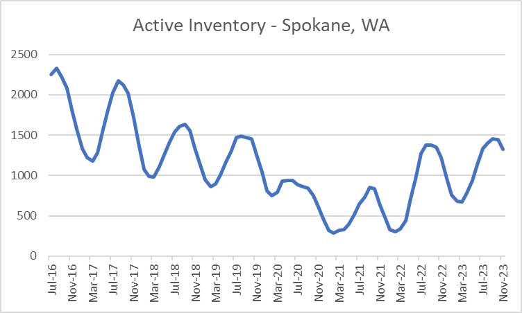 - For comparison, I’ve included the inventory chart for Spokane, WA, where active inventory today is about the same as it was pre-pandemic. That’s how different the inventory picture can look from city to city!