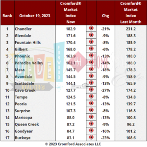 12 out of 17 cities are still sellers markets with Surprise in the balanced zone while Buckeye, Goodyear, Queen Creek and Maricopa are all confirmed as buyers’ markets.