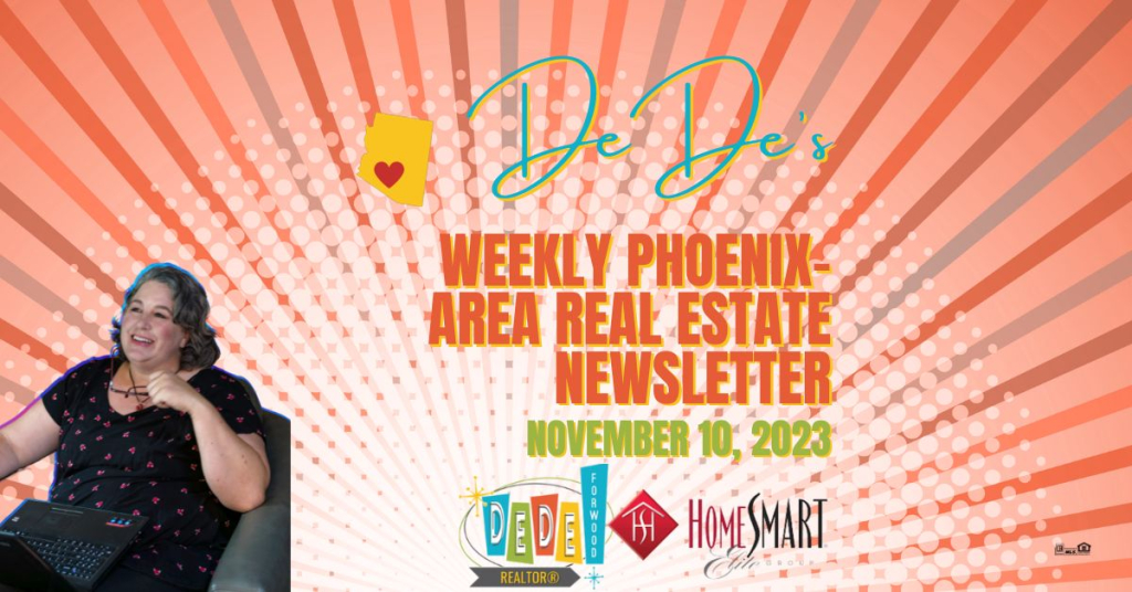 Hey, Phoenix homeowners, potential buyers and investors, friends, clients, and associates! Here's the news, listings, open houses, events and more! Reach out if you have any specific questions! I've enjoyed several conversations this week with friends, colleagues and clients looking for next steps. Enjoy! Things are definitely looking up! The steep fall in mortgage rates has helped existing home...